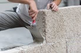 Les blocs de chanvre sont collés avec un mortier-colle en jointe mince de 3 mm. Il est important de les protéger contre l’humidité.